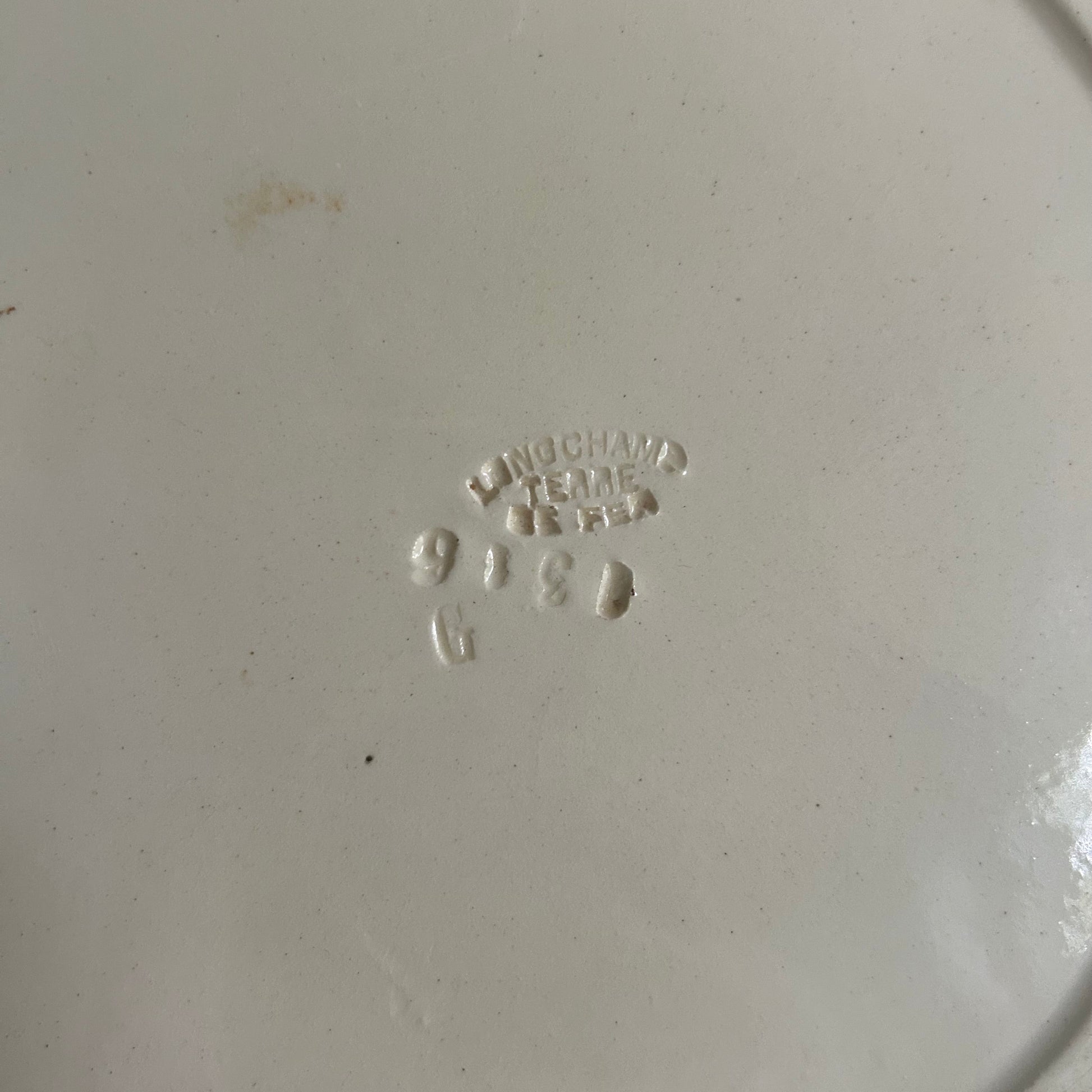 Certainly one of the most beautiful asparagus plates produced by Longchamp, this antique compartmentalized dish showcases exceptional artistry and functionality. Crafted in slip-glazed majolica, it features a central section designed to elegantly present asparagus, flanked by two side compartments perfect for sauces and scraps.