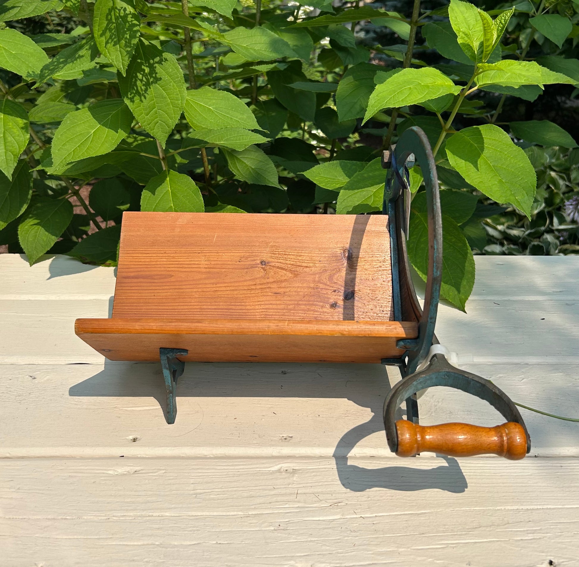 These robust cast-iron and wood slicers were common in Danish kitchens for slicing dense rye bread and other items.