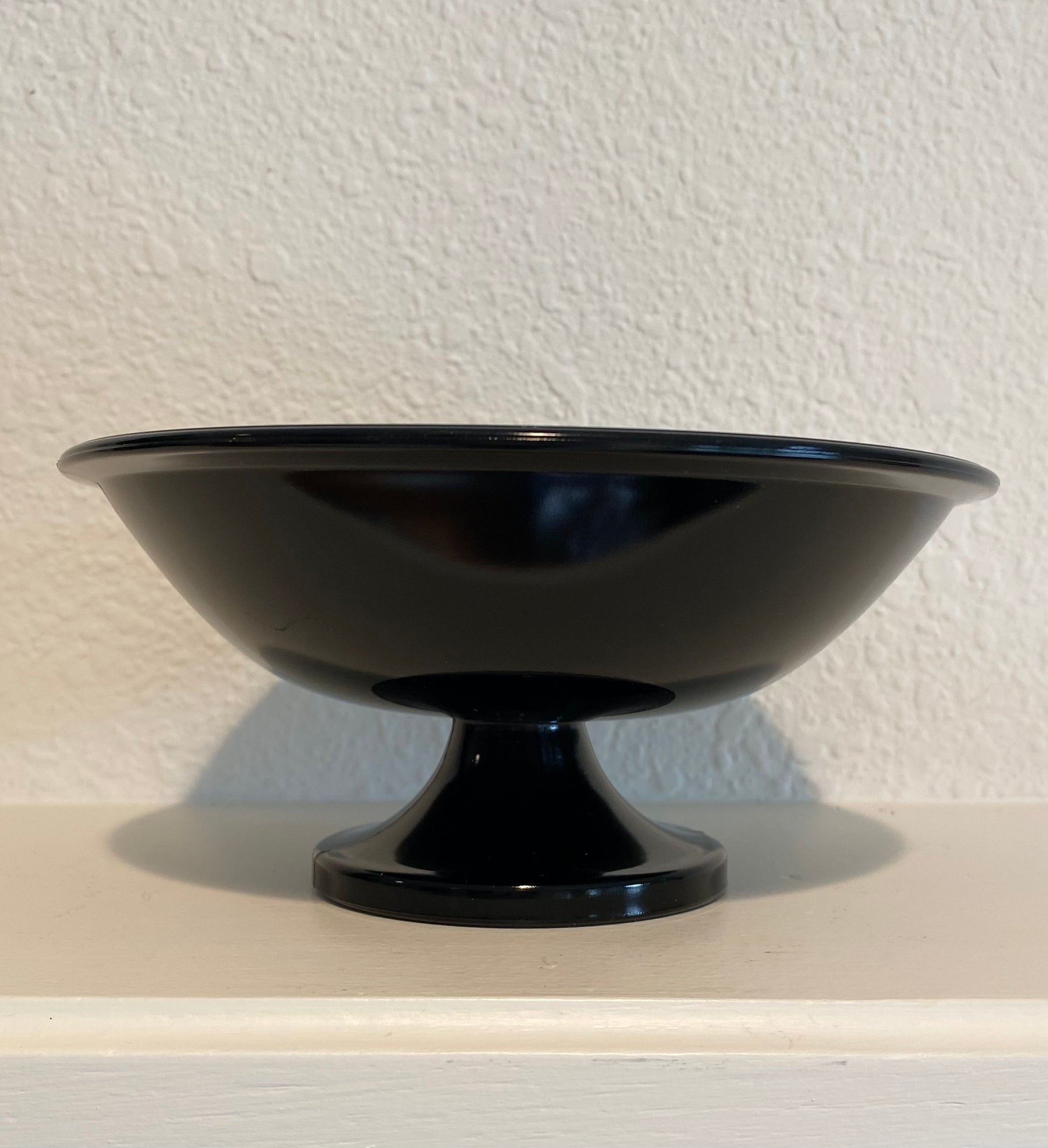 Vintage black glass pedestal 7”W x 3 1/4” H