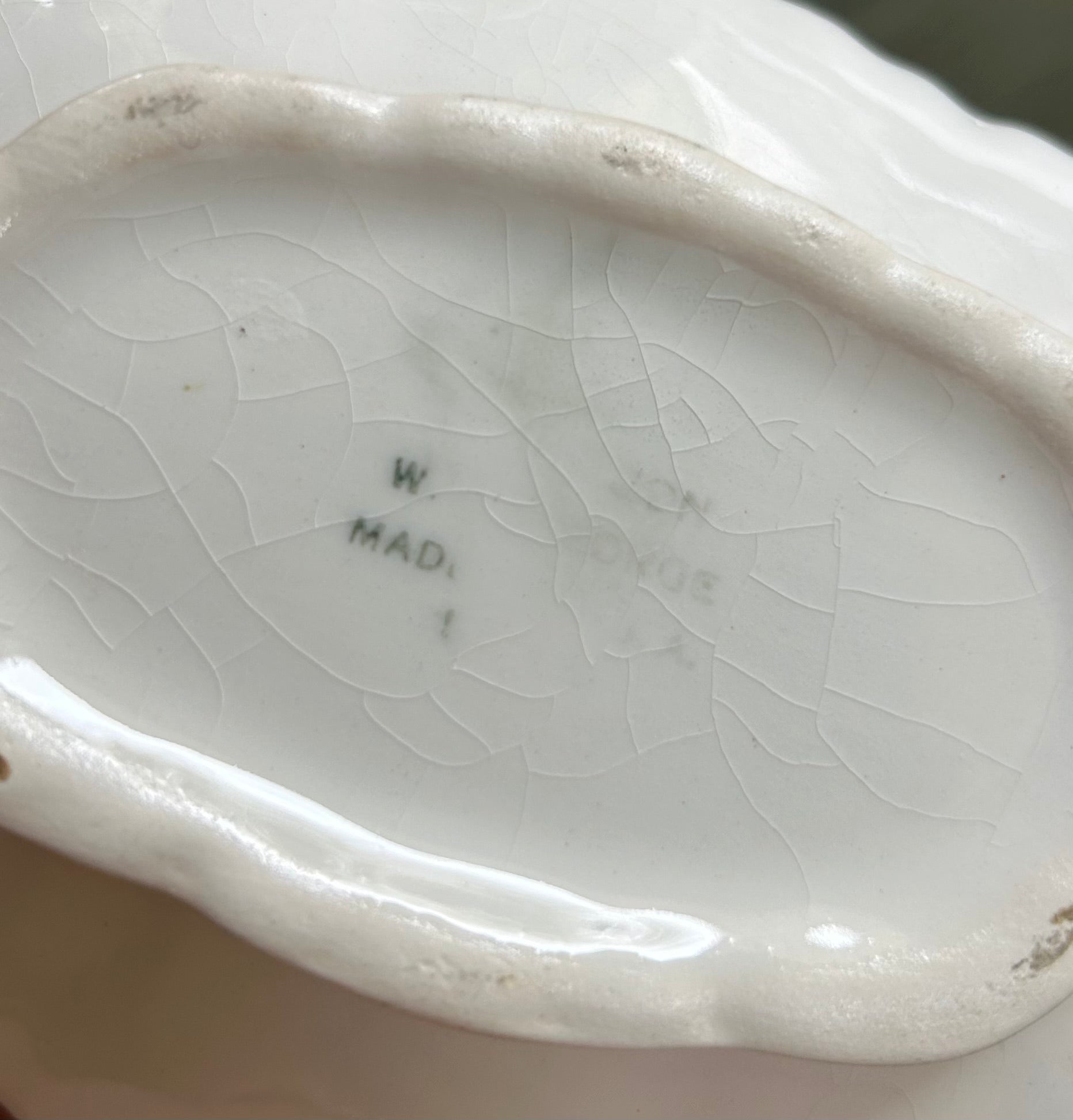 Lovely antique gravy boat made in France. Lots of crazing typical with age, no cracks or chips.