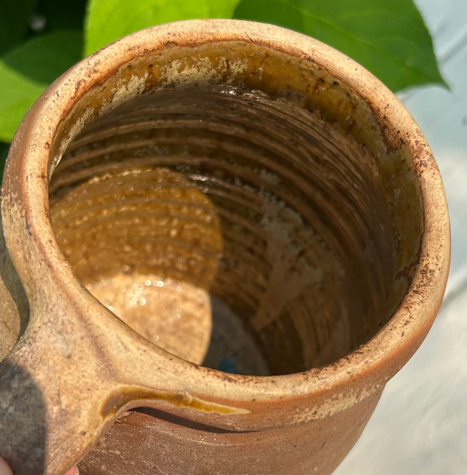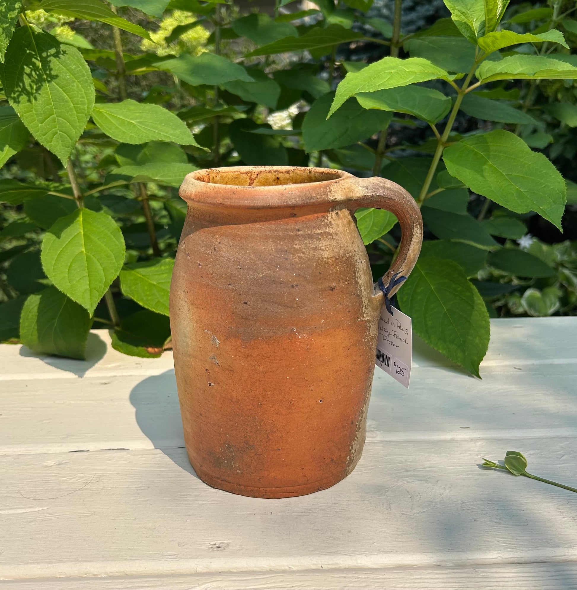 Gorgeous pitcher unglazed on the outside, glazed on the inside. Excellent condition found in France. 5”W x 8”H