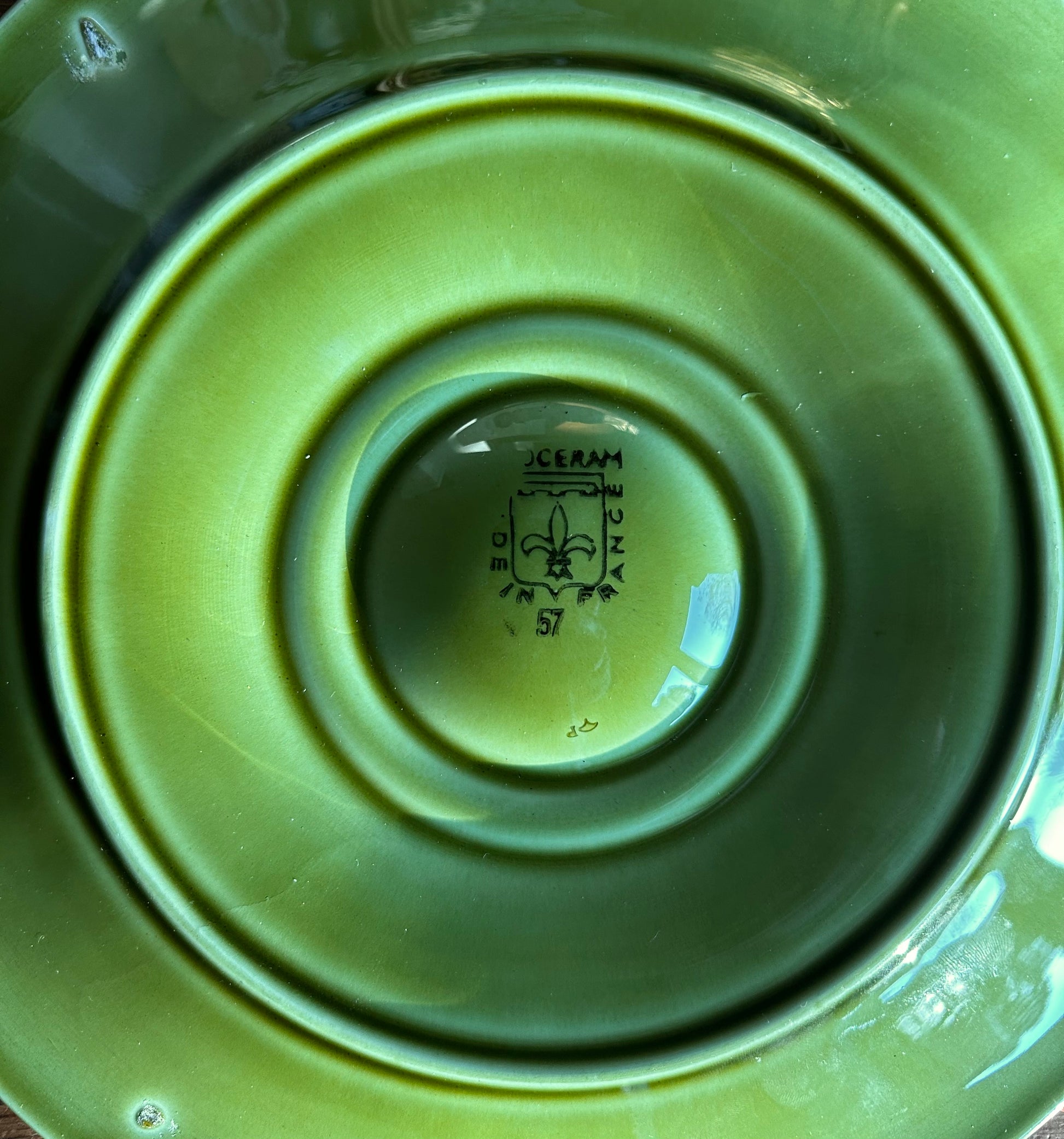French green Majolica oyster plate signed Proceram, stamped 1957